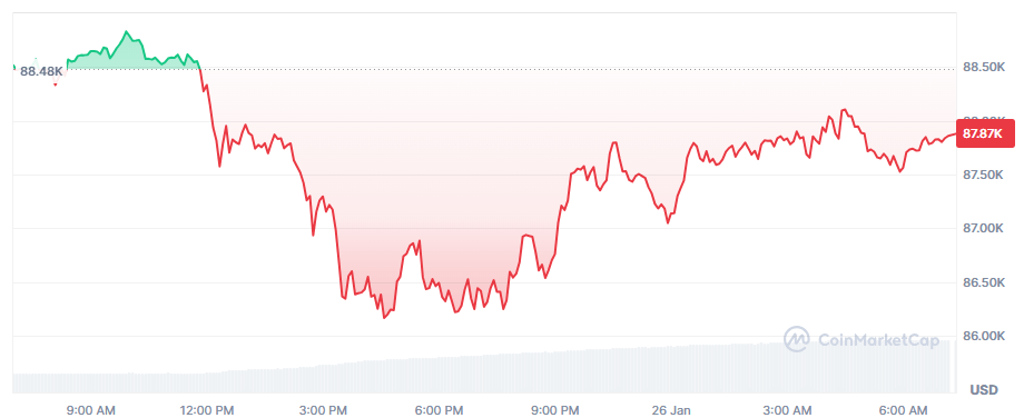 Al momento de redactar esta nota, el BTC se recupera parcialmente por encima de los $87k por token.
