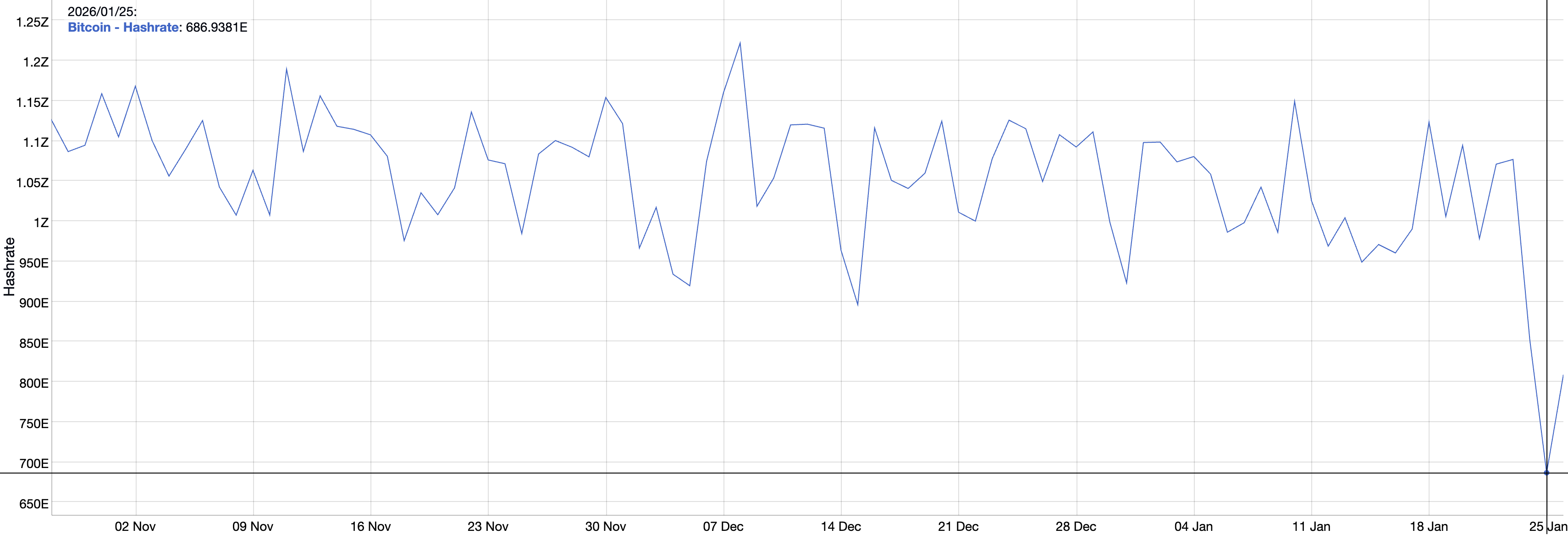 Los mineros de Bitcoin en EE. UU. están cerrando voluntariamente para reducir el consumo de electricidad, apoyando así a las redes eléctricas en medio de intensas tormentas invernales frías.. Los datos muestran que el hashrate de Bitcoin – el poder computacional total requerido para minar un Bitcoin – cayó a 808,99 exahashes por segundo el lunes, desde 1,077 zettahashes por segundo el viernes, una disminución de aproximadamente el 25% en tres días. Esta caída en el hashrate, para aliviar la presión sobre las redes eléctricas, facilita y hace rentable la minería de Bitcoin para los mineros en línea.
