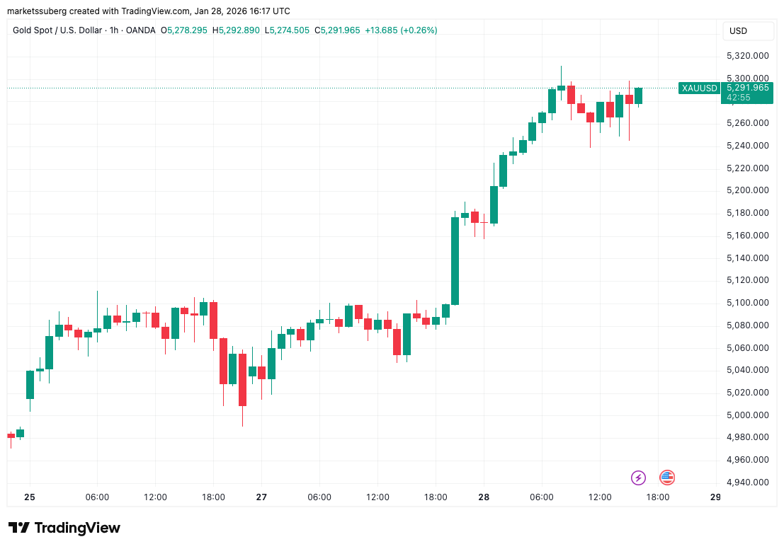 El oro ofreció un anticipo de lo que podría suceder, al alcanzar nuevos máximos históricos por encima de USD 5.300 la onza durante la sesión bursátil asiática.