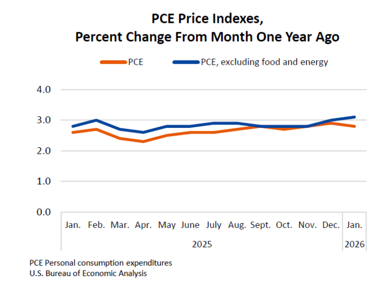 Conocido como el indicador de inflación “preferido” de la Reserva Federal, el PCE de enero coincidió con las expectativas del mercado, registrando 0,3% mensual y 3,1% interanual, según datos de la Bureau of Economic Analysis.