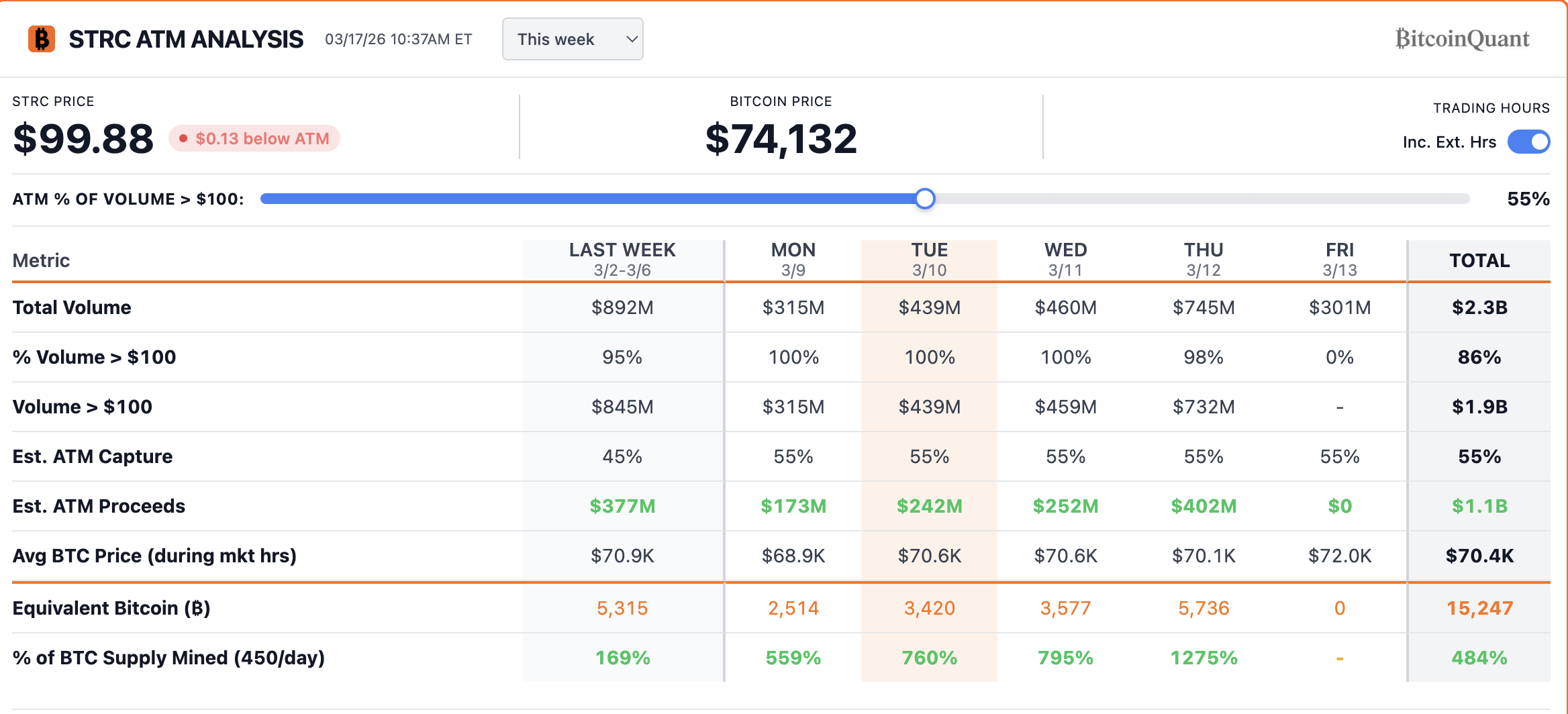 Antes de la pausa, Strategy se encontraba en un modo de acumulación agresiva, comprando 22.337 $BTC en la semana que finalizó el 15 de marzo, financiado en parte por cerca de USD 1.180 millones en ventas vinculadas a STRC.