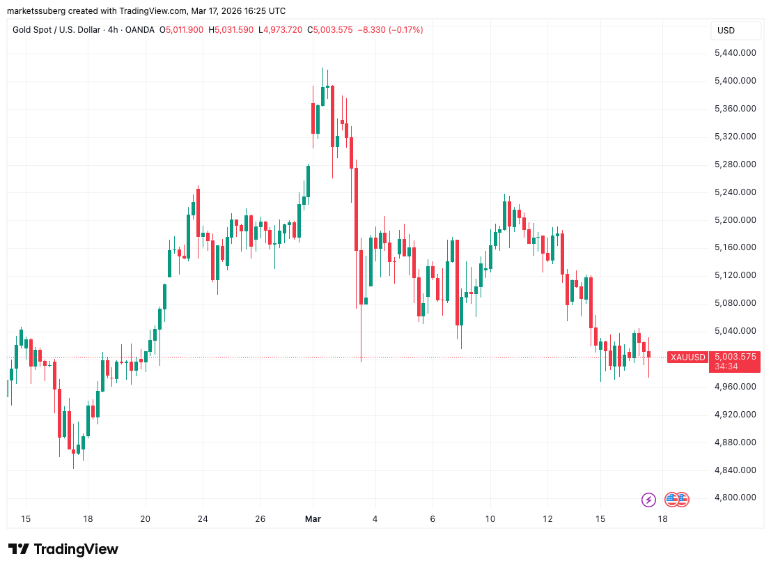 El oro, sin embargo, insinuó una ruptura del soporte de 5.000 dólares, volviendo a probar ese nivel por tercer día consecutivo.