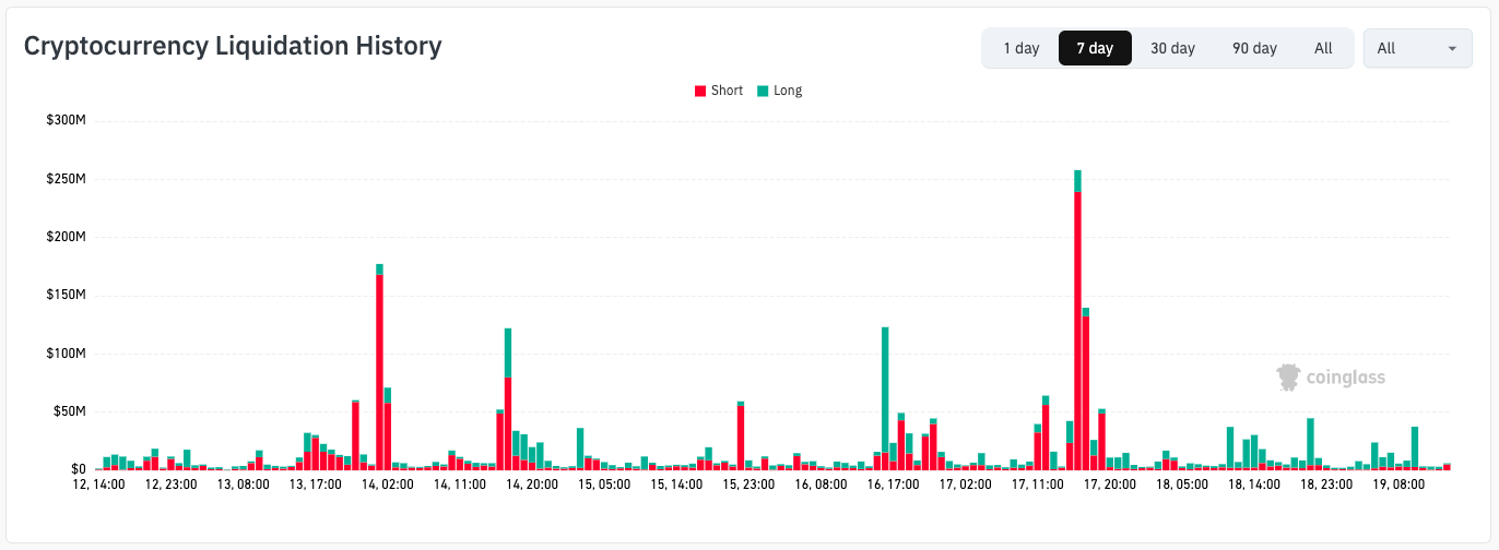 Los datos de CoinGlass mostraron que las posiciones largas estaban bajo fuego durante la retracción del precio de $BTC, con un total de 260 millones de dólares en liquidaciones de criptomonedas en las últimas 24 horas.