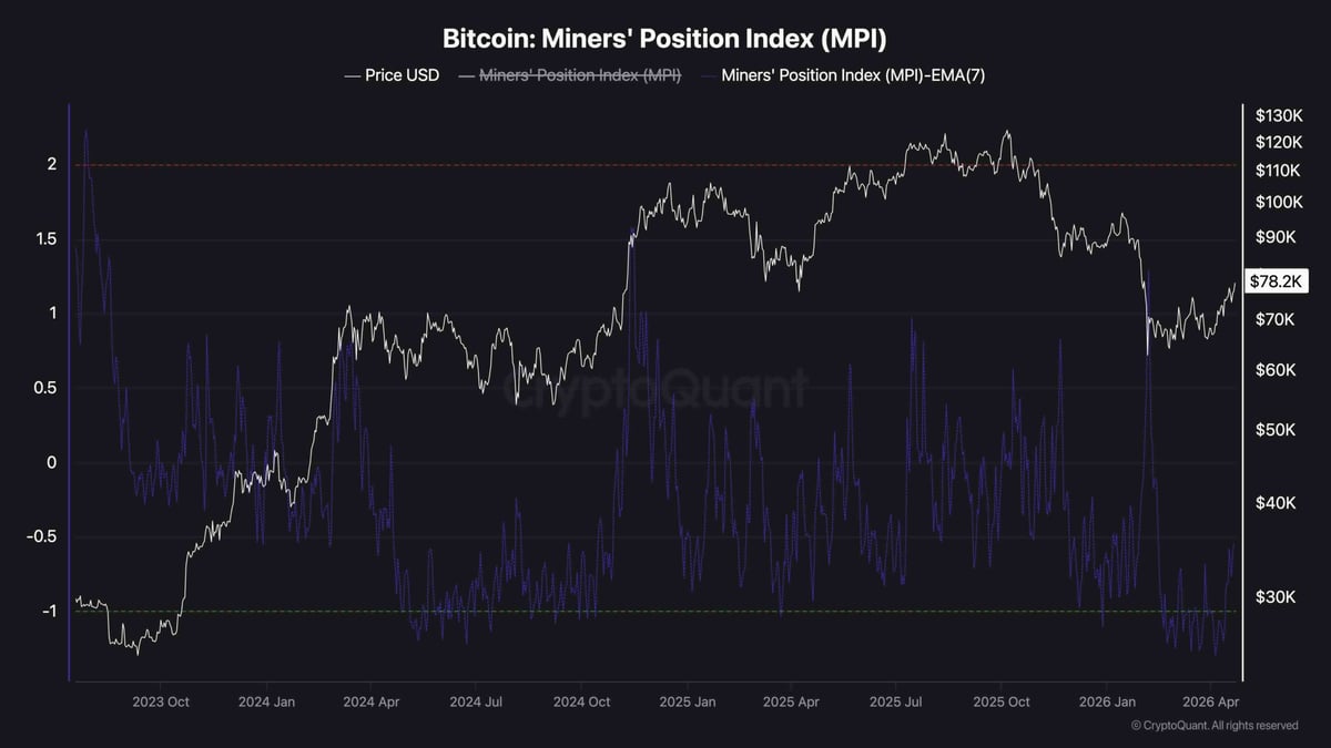 Esto marca un contraste claro con las etapas anteriores del mercado alcista de 2025, cuando el MPI subía repetidamente por encima de cero a medida que los mineros vendían en la fortaleza del precio, a menudo antes de techos locales.