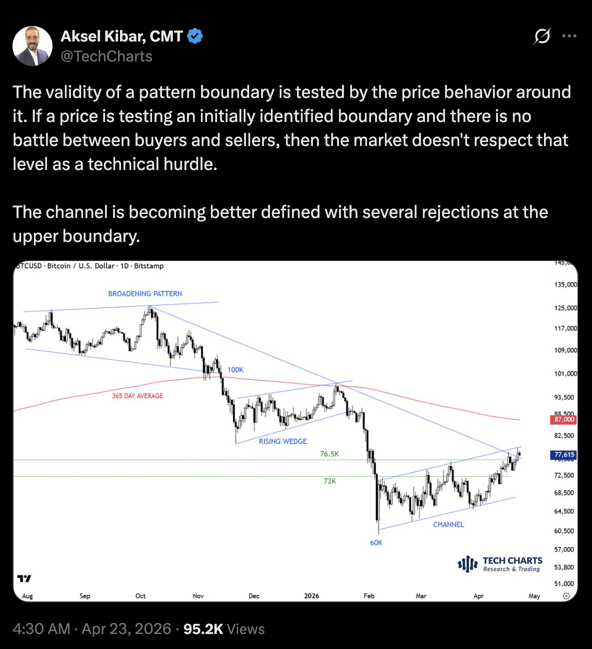 El técnico de mercado certificado Aksel Kibar publicó el siguiente gráfico y dijo: