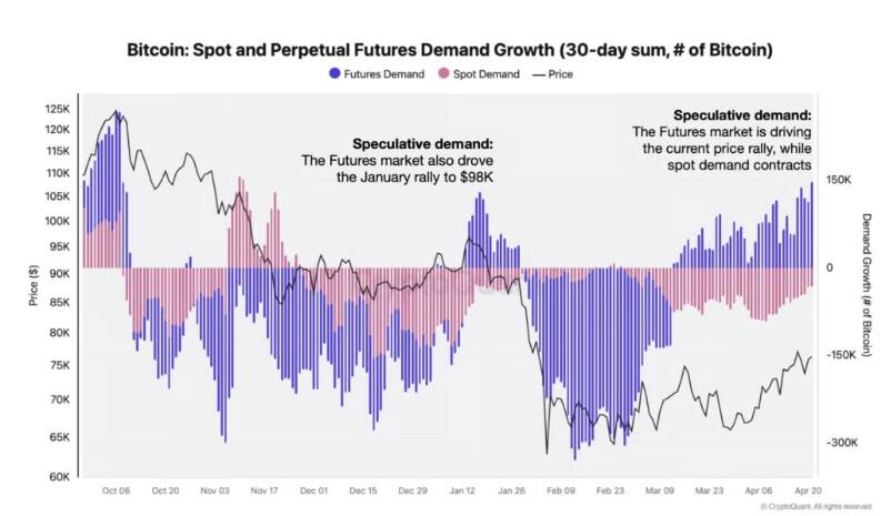 Los datos recientes de CryptoQuant muestran una divergencia clara. Mientras el precio subía, el mercado al contado registraba ventas netas durante los últimos 30 días.