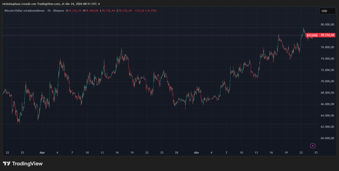 Como consecuencia de esta dependencia, el precio no logró estabilidad hasta que se estableció un alto al fuego y su posterior ampliación, anunciada el 22 de abril, como reportó CriptoNoticias. Esto fue lo que finalmente llevó a bitcoin a los 78.000 dólares.