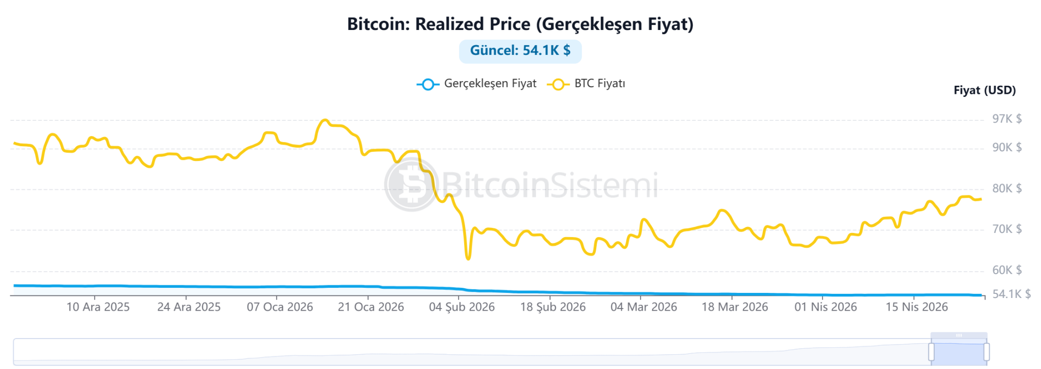 Uno de los indicadores más importantes en la cadena de bloques, el precio de venta, se sitúa en torno a los 54.100 dólares. El hecho de que el precio actual de Bitcoin esté muy por encima de este nivel sugiere que el mercado es generalmente rentable y que esta zona podría ofrecer un sólido soporte a los inversores a largo plazo.