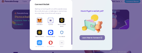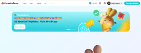PancakeSwap es el intercambio descentralizado líder en la red BSC. Aquí, los usuarios pueden comprar y vender una amplia gama de tokens y es un proceso sencillo. Asegúrese de estar en el sitio web correcto de Pancakeswap para evitar que se agote su billetera. El siguiente paso es hacer clic en la opción «Conectar billetera» en Pancakeswap en la esquina superior derecha, como se ilustra a continuación: