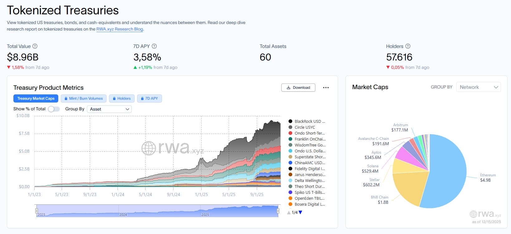 Según datos de RWA.xyz, el tamaño total de los fondos monetarios de mercado tokenizados ha aumentado de $3 mil millones a $9 mil millones en un año. RWA.xyz rastrea los activos del mundo real tokenizados en blockchain, mostrando de manera transparente el tamaño total, las tasas de crecimiento y la distribución de tales productos financieros en cadena.