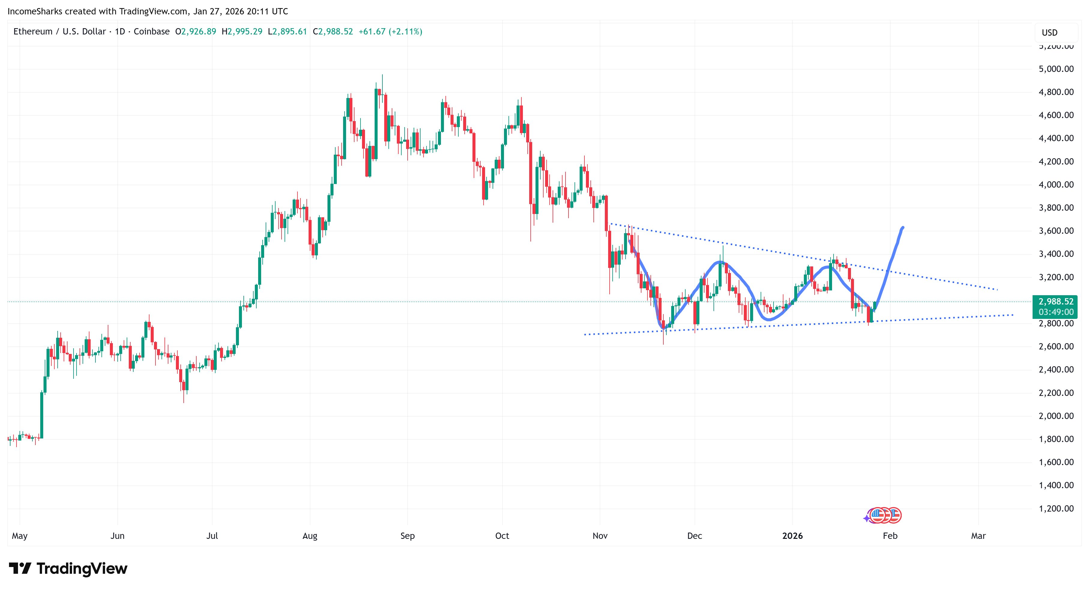 Scott Melker destacó recientemente que las tarifas en la red de Ethereum cayeron a su nivel más bajo desde 2017, lo que podría favorecer una mejora gradual del sentimiento. Por su parte, IncomeSharks ha señalado que la estructura actual facilita un rebote técnico si el mercado acompaña.