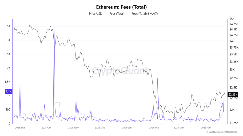 - Las tarifas totales de Ethereum se han disparado a su segundo nivel más alto desde la liquidación de apalancamiento del 10 de octubre.