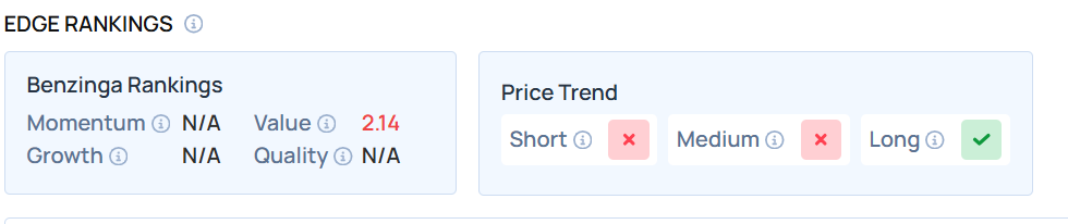 BMNR muestra una débil tendencia de precios a corto y medio plazo, pero unas perspectivas positivas a largo plazo. Visita Benzinga Edge Stock Rankings para ver cómo se compara con Strategy Inc. (NASDAQ:MSTR), la mayor empresa de tesorería de criptomonedas del mundo.