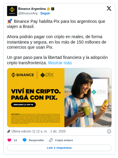 Binance Pay activa Pix para argentinos en Brasil y acelera la interoperabilidad cripto