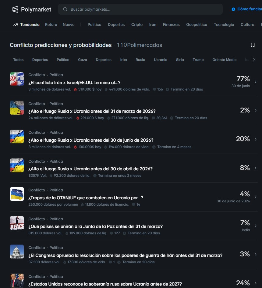 Los legisladores destacan que en semanas anteriores se observaron contratos en Polymarket con volúmenes de 54 millones de dólares sobre el futuro del líder supremo de Irán, así como apuestas sobre la toma de ciudades ucranianas por parte de fuerzas rusas.