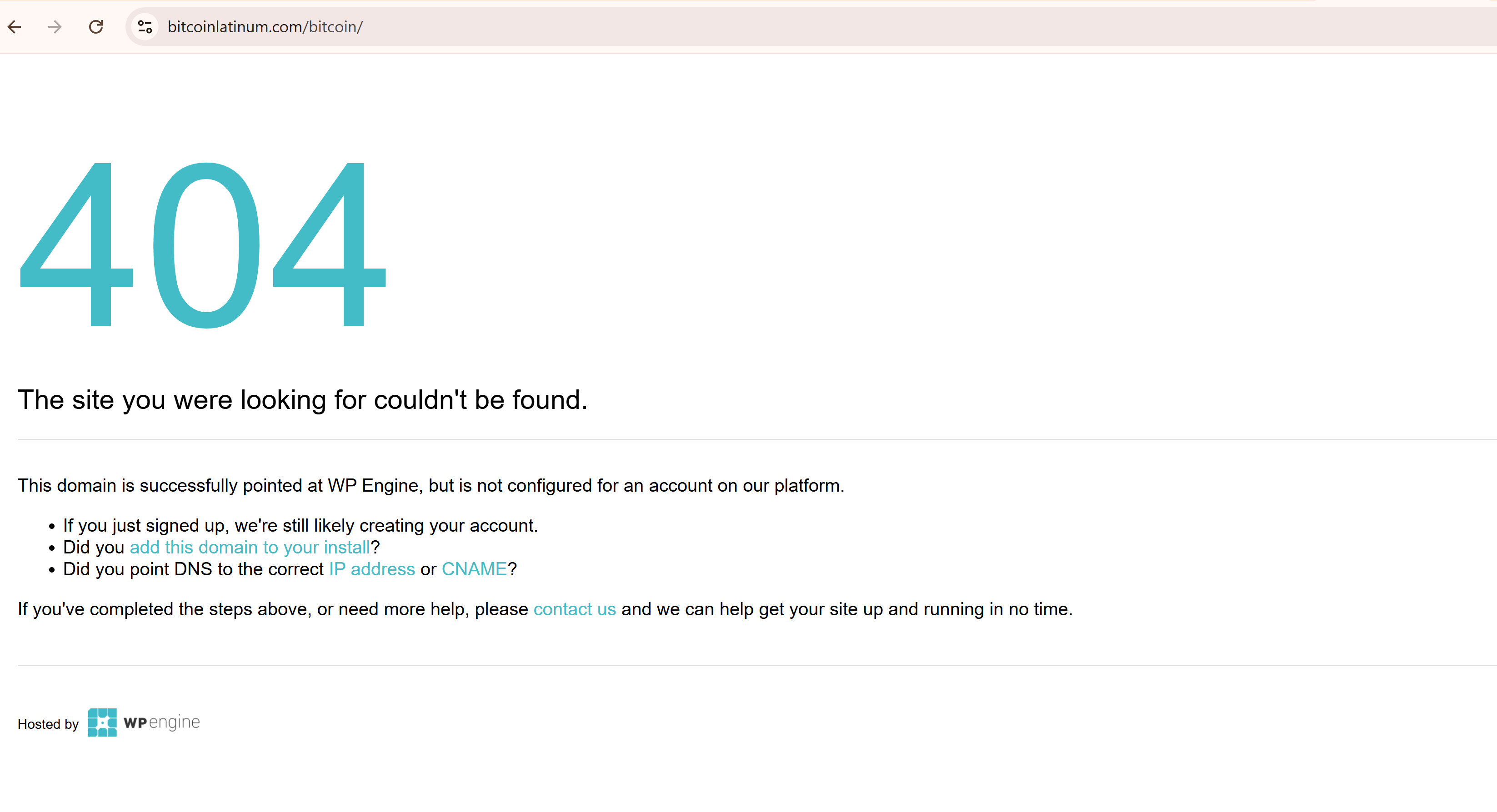 El sitio web de Bitcoin Latinum actualmente muestra un error 404.