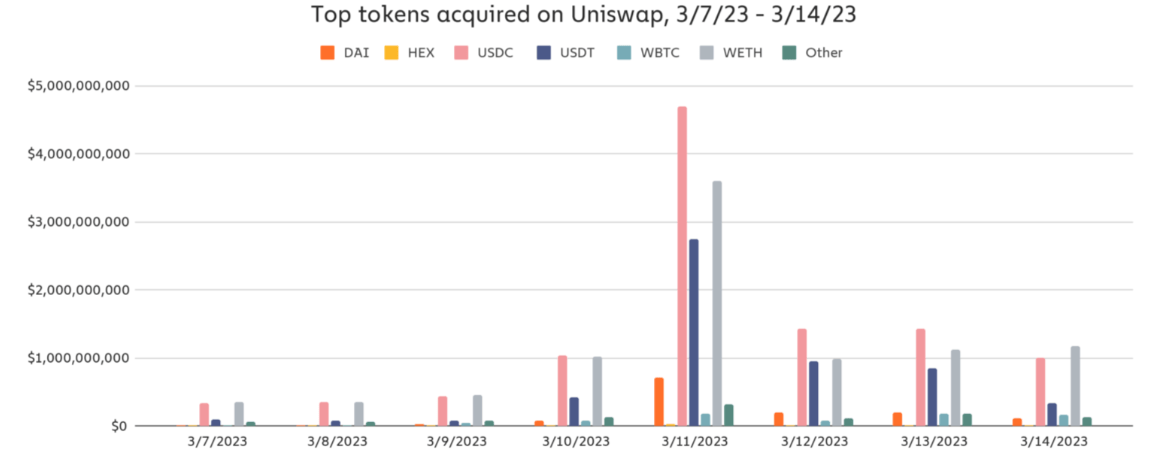 Muchos de los usuarios, tras huir de los CEX a DEX respectivamente, eligieron comprar USDC apostando una recuperación. Esta apuesta de muchos usuarios tras la pérdida de la paridad, específicamente el 11 de marzo, les garantizó una jugosa tajada tras la recuperación de la paridad de USDC el 13 de marzo.