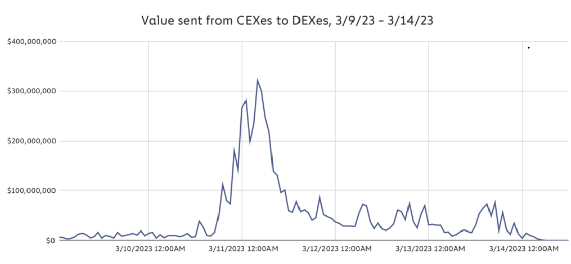 Especialmente el día 11 de marzo, tras la declaración por parte de las autoridades regulatorias de California, alrededor de $300 millones se movilizaron de CEX a DEX en un solo día.