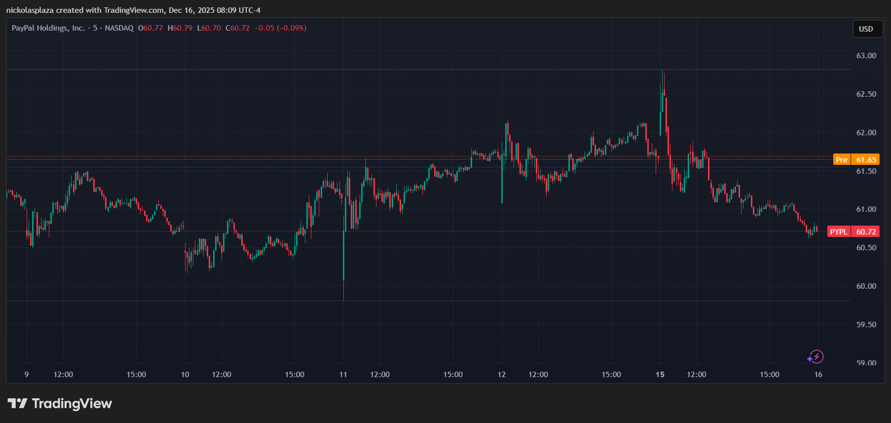 Tras conocerse la noticia, las acciones de la empresa experimentaron un ascenso inicial hasta los 62,8 dólares, aunque posteriormente se estabilizaron alrededor de los 60,7 dólares, como se aprecia en el siguiente gráfico.
