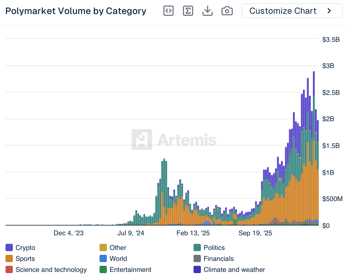 Esto no esdent. Kalshi ha basado su crecimiento en lostracdeportivos, ofreciendo apuestas al ganador, hándicaps y futuros por partido en las principales ligas, con estructurastracquetractanto a apostadores profesionales como a inversores ocasionales. Los resultados son evidentes. Lostracde eventos deportivos representaron más del 85 % del volumen de negocio semanal de Kalshi, una cifra que subraya elmaticcrecimiento de la categoría deportiva en relación con los mercados políticos y financieros, un cambio que se ha acelerado significativamente durante el último año.