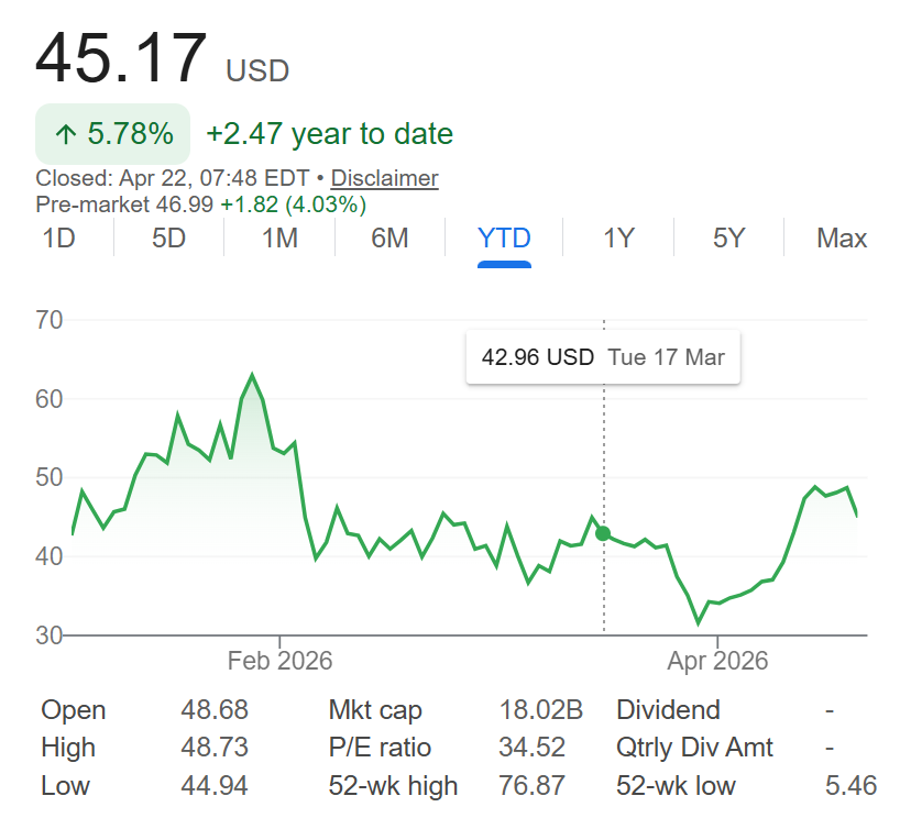 A partir de abril de 2026, IREN ha entrado en una etapa clave de transición, en la que la acción podría empezar a reflejar la narrativa de la IA, dependiendo menos del tracdel mercado de criptomonedas. IREN cotizaba en torno a los 45,12 dólares, recuperándose de los mínimos del año de 31,62 dólares.