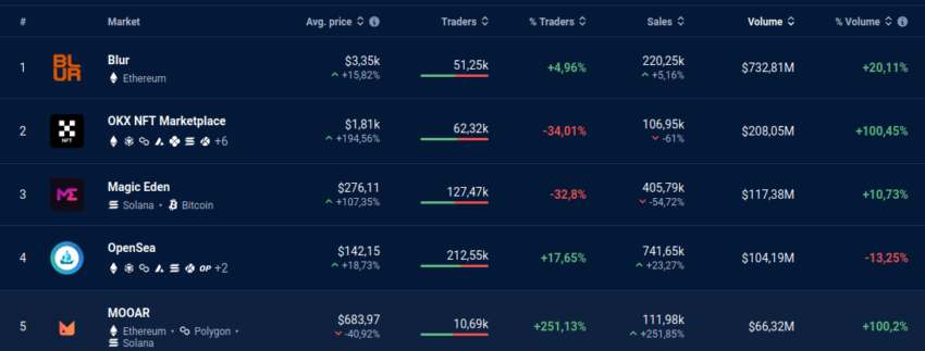 El actual líder del mercado, Blur, se ha caracterizado desde sus inicios por sus agresivas campañas de marketing, las cuales incluyen airdrops y otras iniciativas dirigidas a captar nuevos usuarios y, por los resultados, ha acertado en sus movimientos.