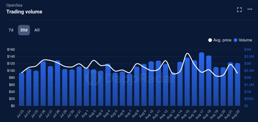 Tomando en consideración los datos de DappRadar, se refleja que, en los últimos 30 días, OpenSea posee un volumen de trading de 104,19 millones de dólares.