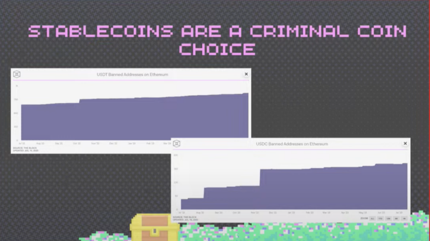 Hablando durante el último día en EthCC 6, Annison argumentó que los delincuentes prefieren Tether (USDT) y USD Coin (USDC) porque son fáciles de obtener.