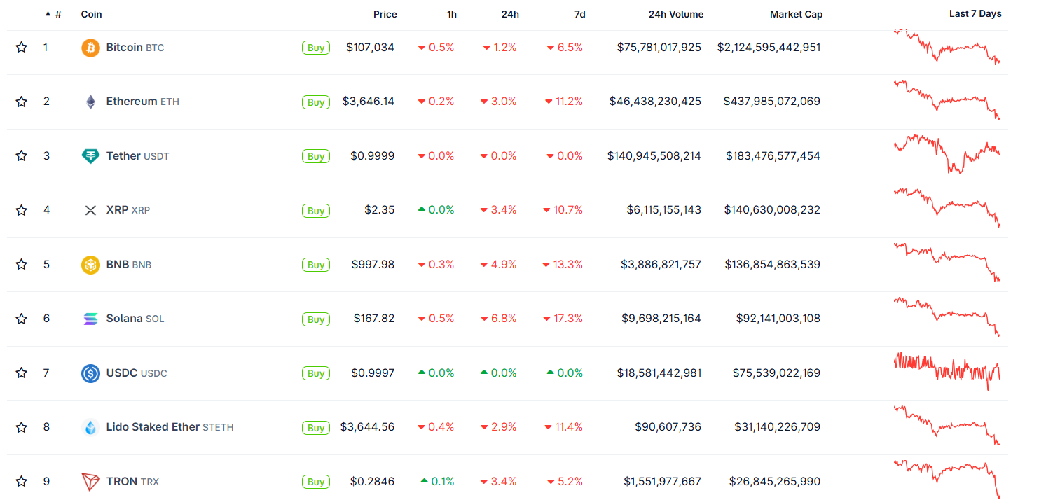 El mercado de criptomonedas ha perdido un 3,2% de su valoración desde que comenzó el hackeo, con las principales criptomonedas Bitcoin (BTC), Ethereum (ETH), XRP, BNB y Solana (SOL) liderando las pérdidas.