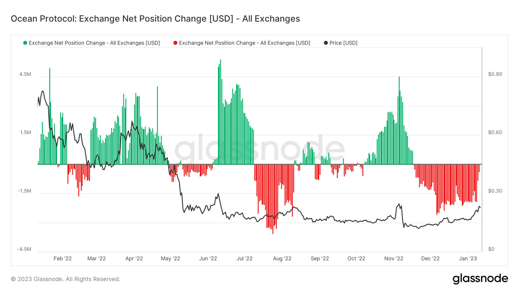 OCEAN outflows exceeded $2.5 million in withdrawals over a 30-day period — beginning in mid-November 2022 and ramping up into mid-December 2022 — according to Glassnode data.