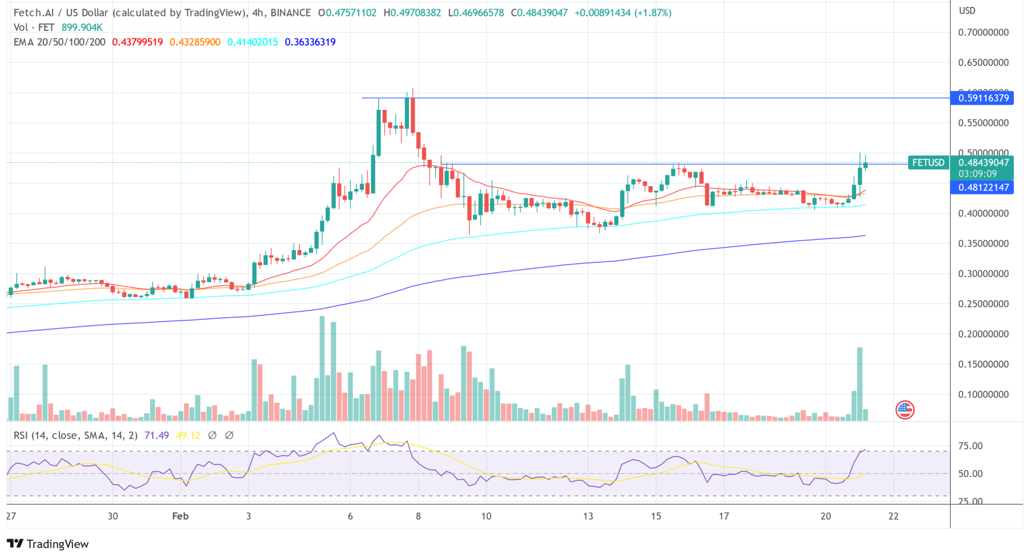 The high marked a year-to-date performance of a whopping 540% which made a consolidation phase more than necessary. But the news seems to have brought the Fetch AI bulls back to life. In order to break out of the sideways trend of the past two weeks, the FET price needs to break above the $0.48 level.