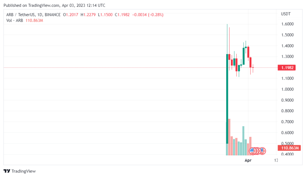 At the time of writing, $ARB is trading at $1.19, indicating a drop of 4.82% over the past 24 hours. Also, the 7-day price action of $ARB is down by 3.75%.