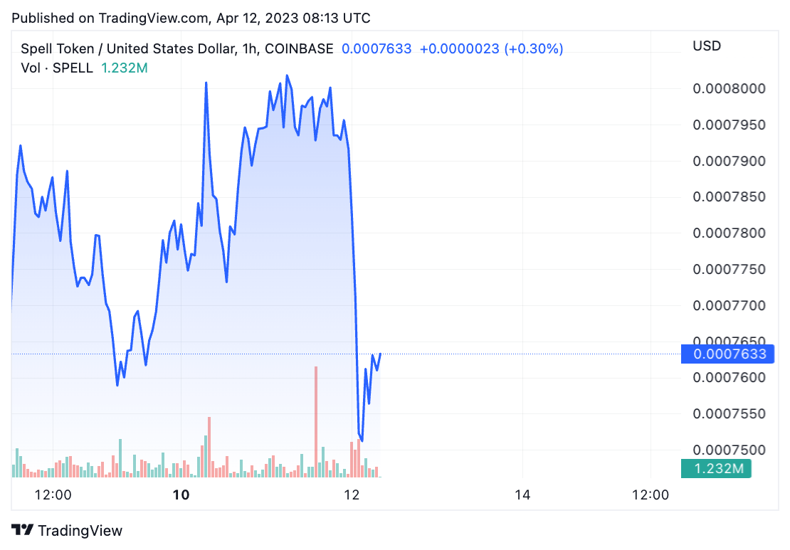SPELL’s price also moved almost identically to TRX’s. CryptoSlate data shows that SPELL recorded a 4.65% decline in the last 24 hours. Due to the delisting news, the price fell from $0.007953 to as low as $0.007510.
