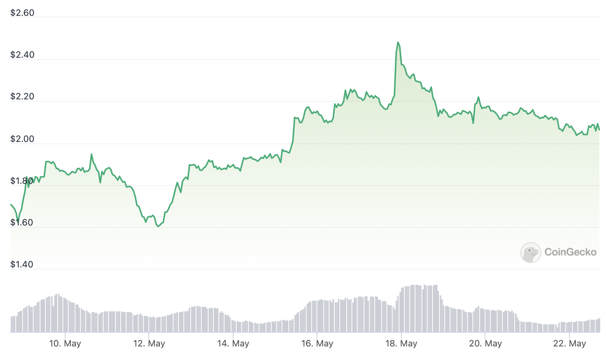 From a peak of $2.56 last Wednesday, $LDO had fallen close to 20% to $2.06 as of press time on Monday.