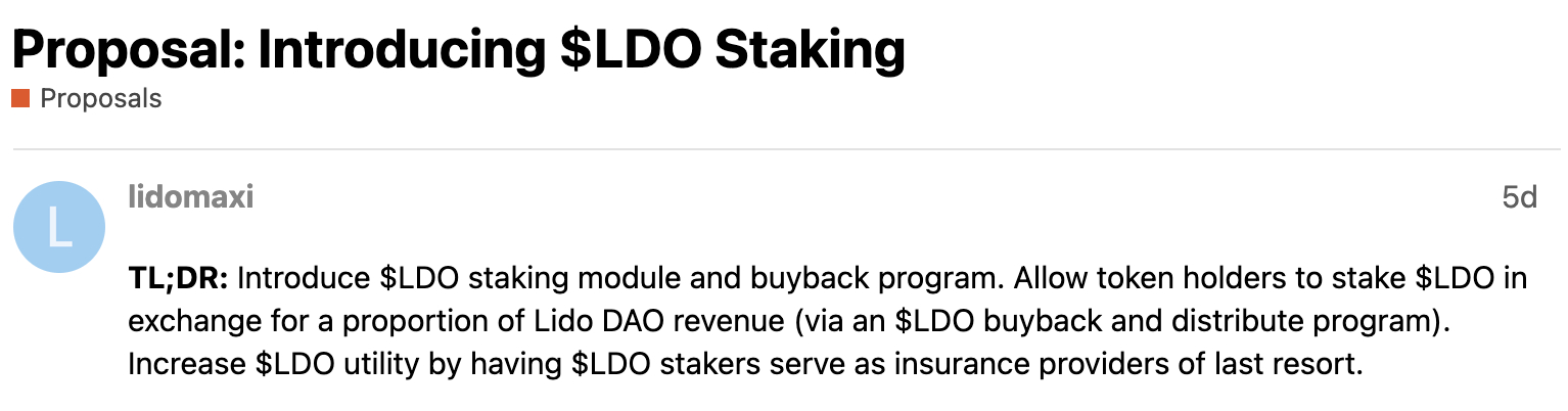 He added that the proposal aims to “catalyze a discussion and propose a solution to the utility and value-accrual issues facing $LDO.”