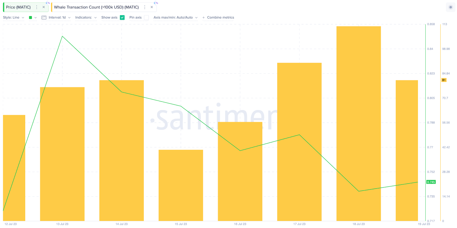 Since the Polygon MATIC to POL token transition hit the newswires, whale investors have increased their trading activity. The Santiment chart below shows that a day before June 13 announcement. Polygon only recorded 61 Whale Transactions. However, at the close of June 18, it rose to 112.
