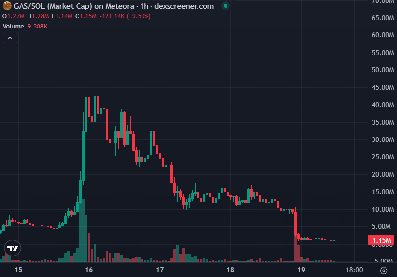 Predictably, this sent GAS tumbling, and the token currently trades at a valuation of just $1.1 million, down 98% from its all-time high.