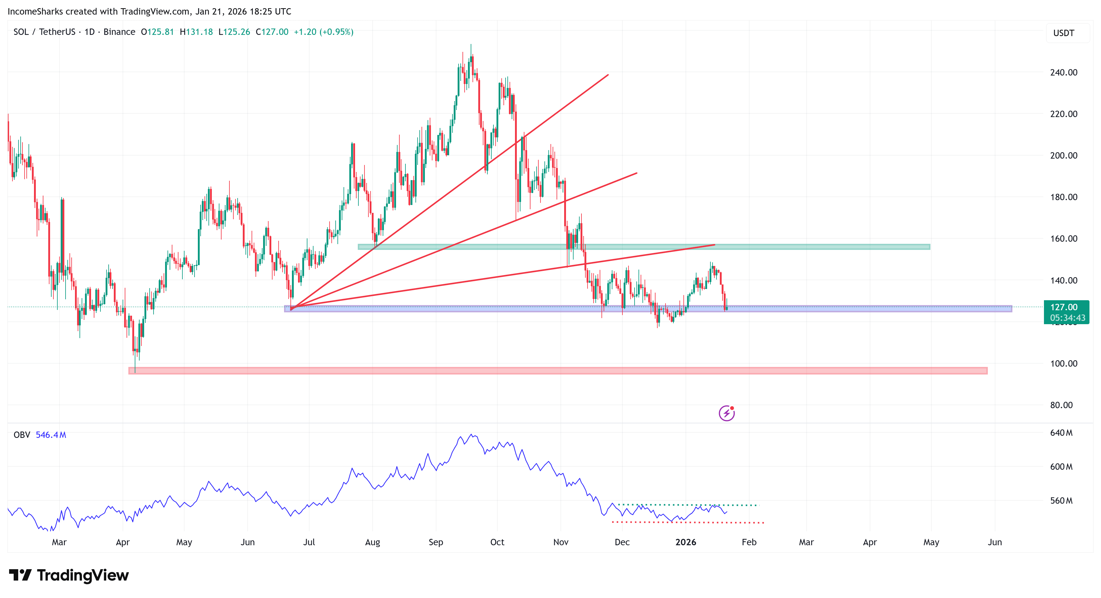 IncomeSharks also highlighted the importance of OBV direction. The analyst noted that price and OBV remain inside channels, which signals hesitation. A bullish OBV break could support upside targets toward $140 and $155 to $160. Conversely, an OBV breakdown could shift focus toward $115 and possibly $100.