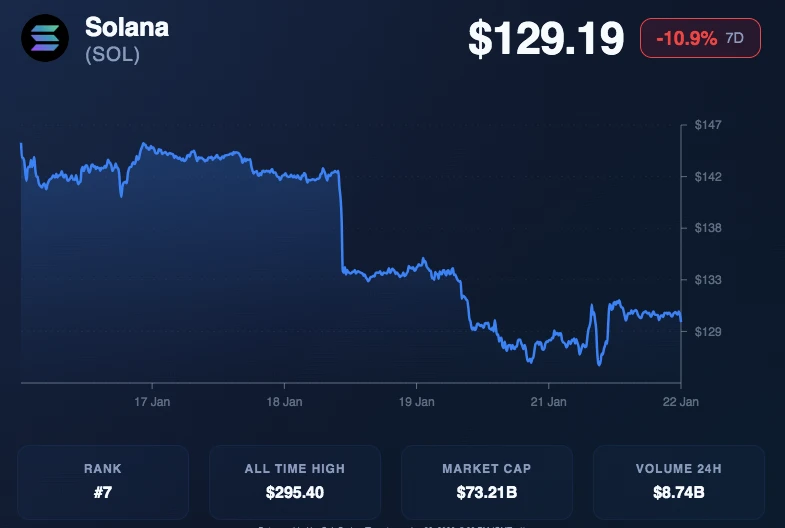 Solana traded higher on the day, with SOL priced at $129.99 and up 2.08% in 24 hours. However, the token remained down 10.24% over the past week.