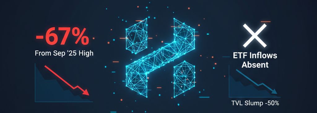 - Total value locked (TVL) in Hedera has collapsed by more than 50% since September.