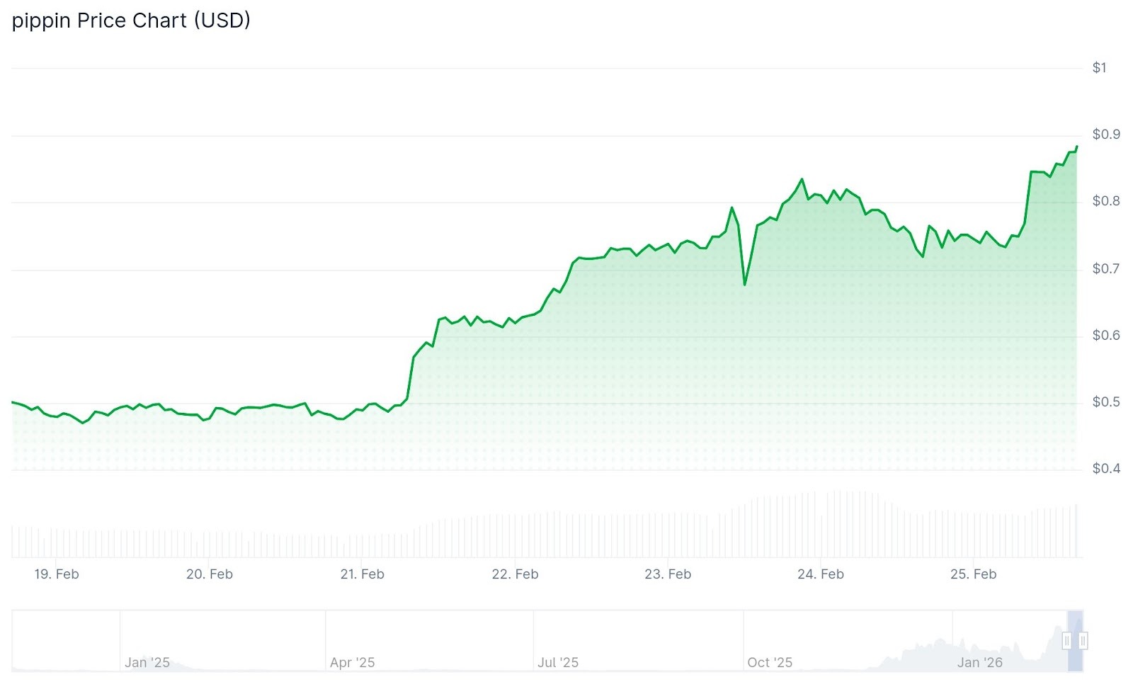 $PIPPIN, an AI-driven memecoin on the Solana blockchain, surged 23% over the past 24 hours, outperforming large-cap cryptocurrencies as traders rotated into narrative-focused tokens.