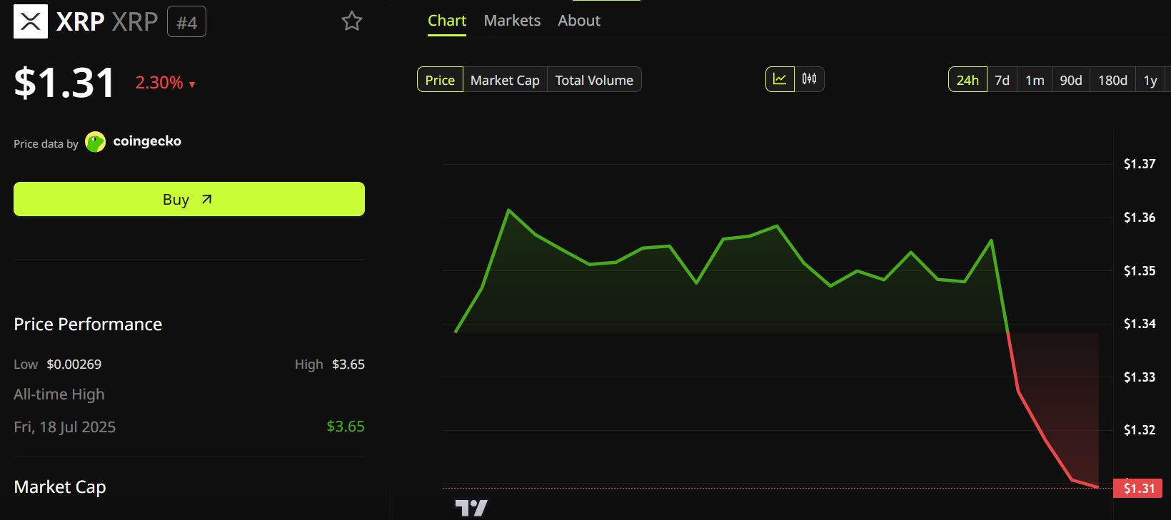 As of this writing, $XRP was trading at $1.31, down 2.30% over the last 24 hours, despite Ripple building a system that could pull corporate finance on-chain.
