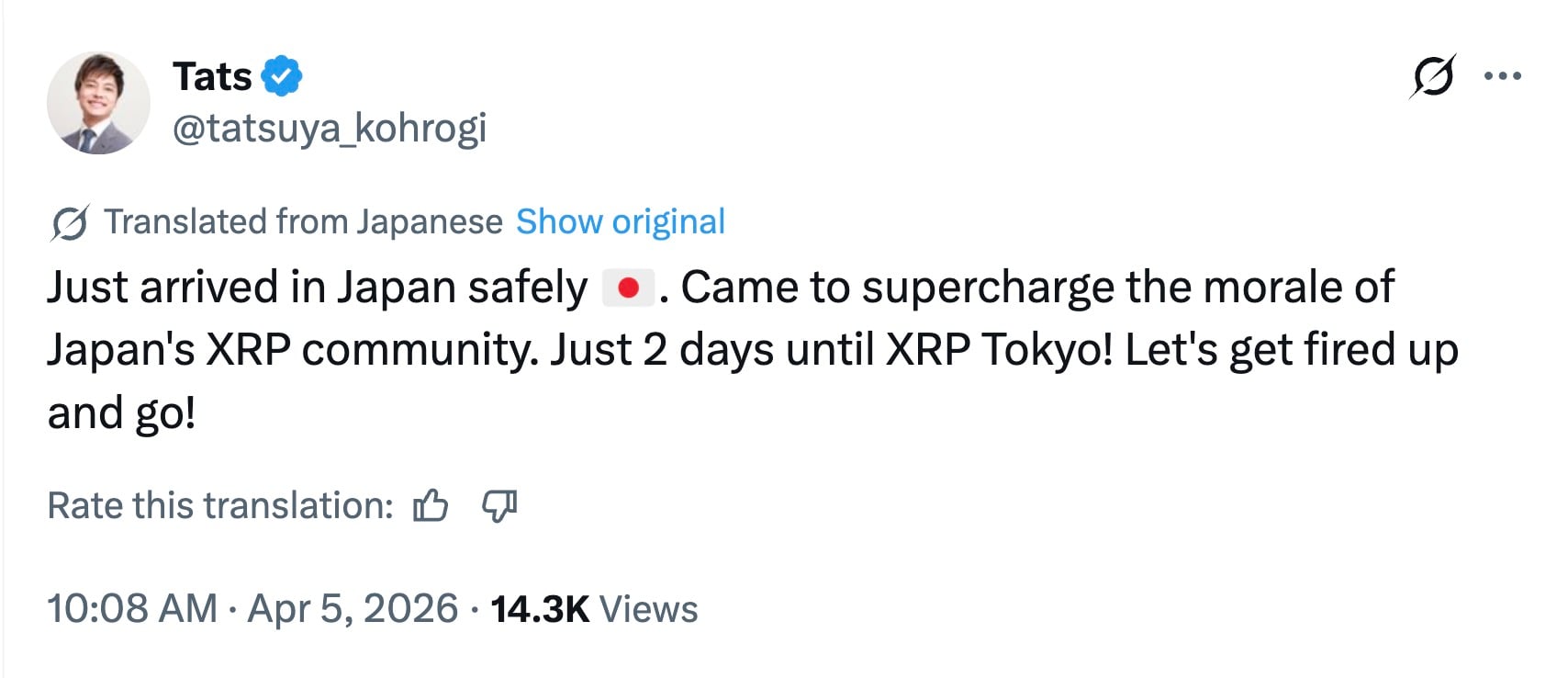 Today, Tatsuya Kohrogi, senior ecosystem development manager at Ripple, officially arrived in Tokyo. In his social networks, he confirmed readiness for the event, noting that his visit is aimed at supporting the local community ahead of the opening of the main conference program for $XRP.