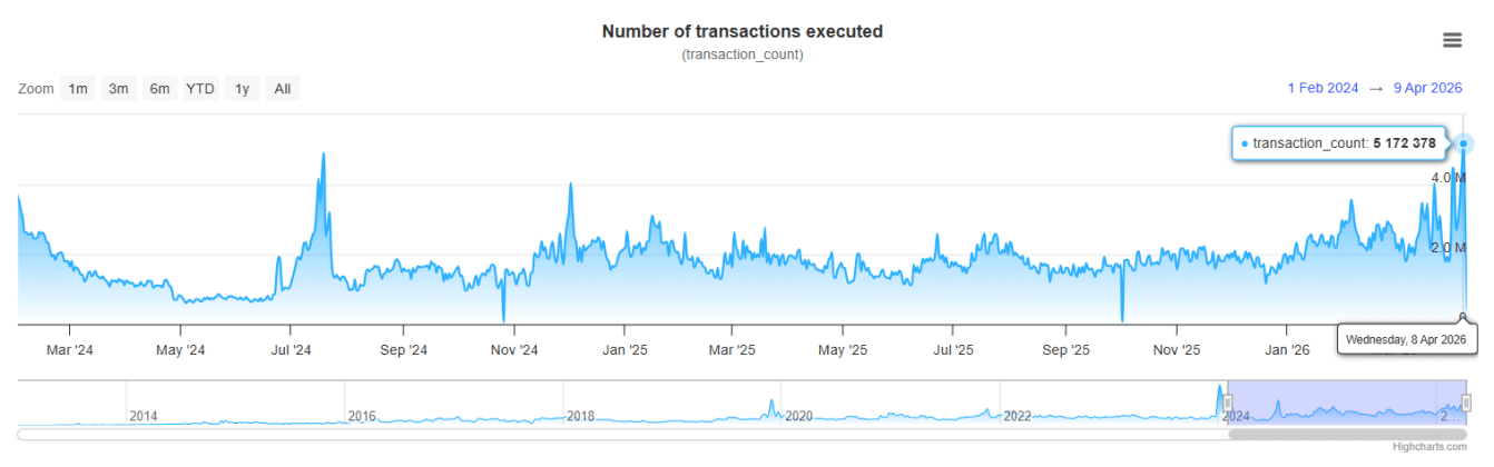 This number pushed beyond the previous yearly high and marked the highest daily total in over two years. Of the more than 5 million transactions recorded, about 4.57 million were successful.