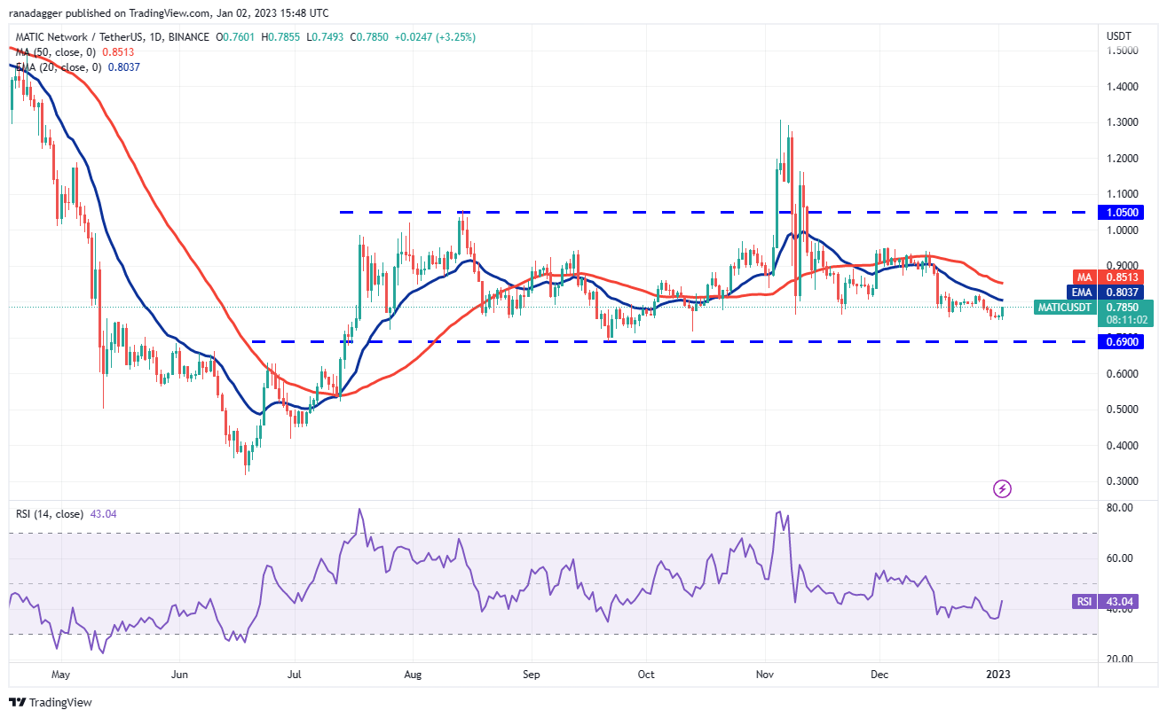 Polygon (MATIC) fell below $0.75 on Dec. 30 but the bears could not capitalize on the advantage and pull the price to the critical support at $0.69.