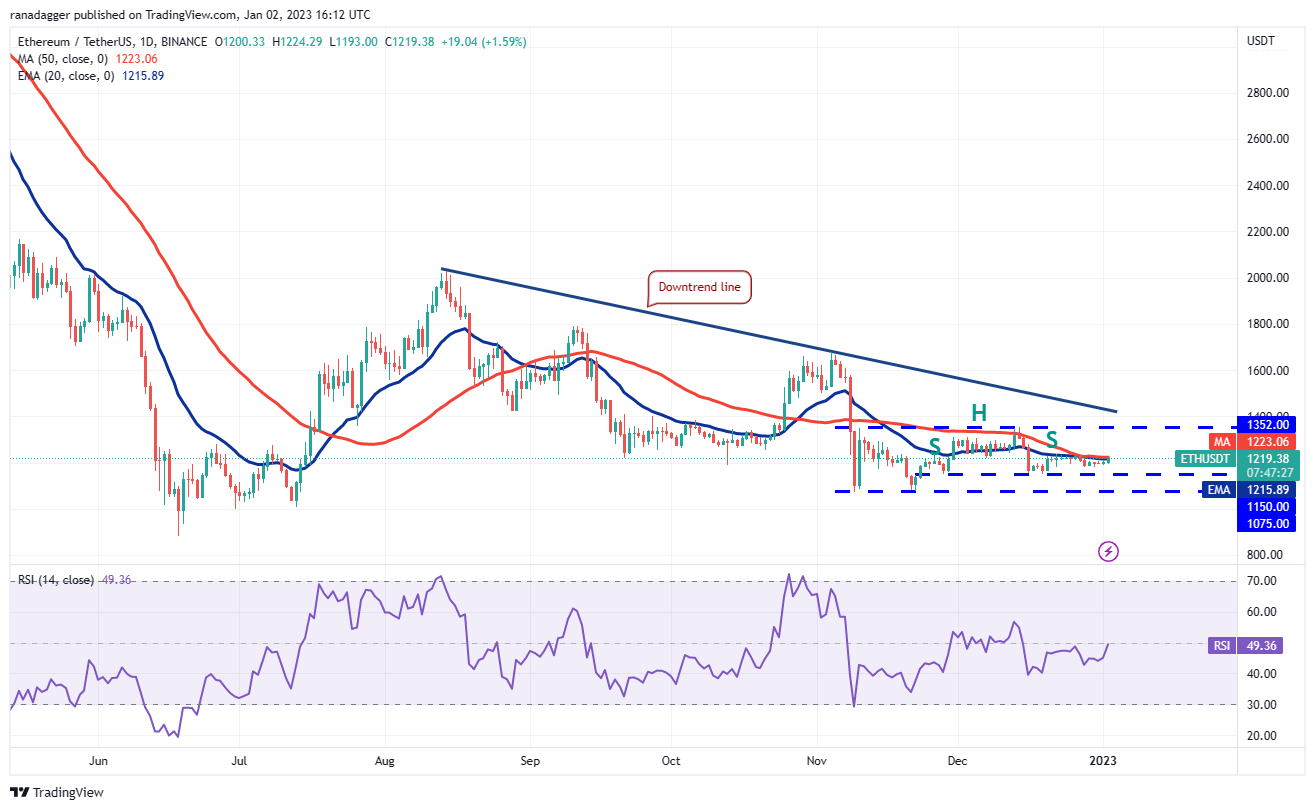 This suggests that the bulls will make one more attempt to propel the price above the moving averages. If they succeed, the ETH/USDT pair could rally to the stiff overhead resistance at $1,352. The bears are likely to protect this level with vigor.