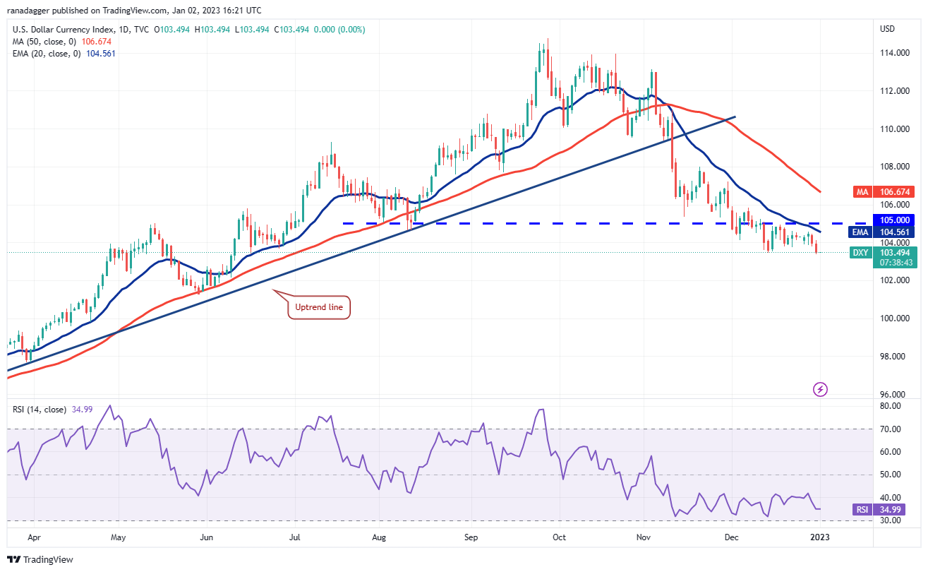 Buyers tried to propel the U.S. dollar index above the 20-day EMA (104) on Dec. 28 but the bears held their ground. This indicates that the sentiment has turned negative and traders are selling on relief rallies.