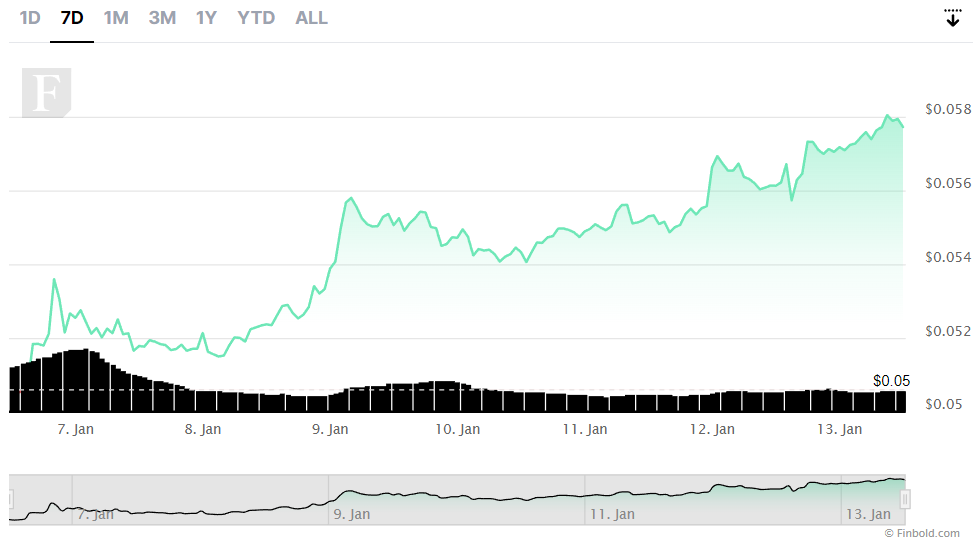 Meanwhile, TRON was at the time of publication trading at the price of $0.0576, demonstrating an increase of 2.74% over the previous 24 hours and a 14.35% advance across the past week, adding up to the cumulative growth of 4.7% on its monthly charts, as per data retrieved on January 13.