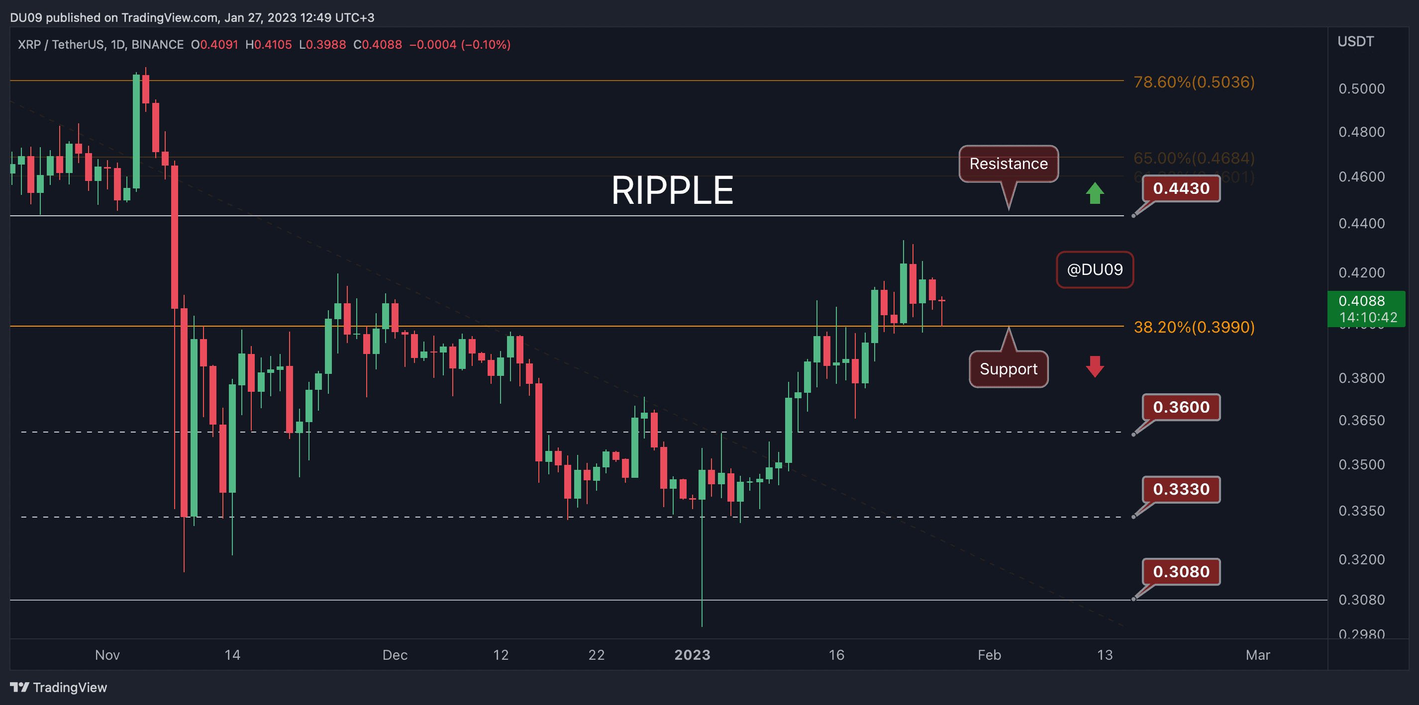 If buyers fail to hold at $0.40 cents, then this cryptocurrency could quickly fall lower toward the next level of support at $0.36. That would also turn the market sentiment bearish for XRP.