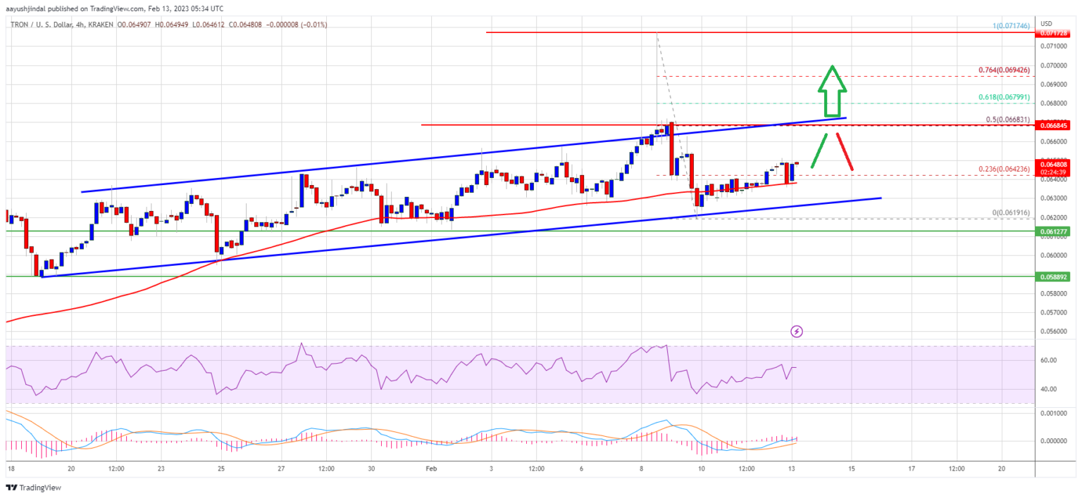 - Tron price is trading in a positive zone well above the $0.0620 pivot level against the US dollar.